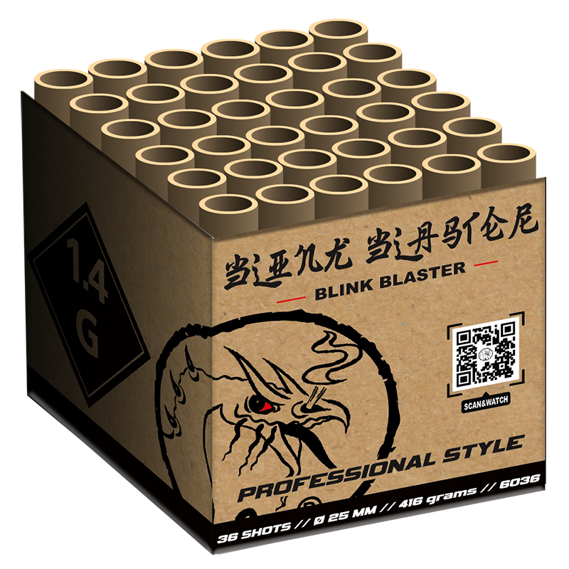 Flitsende boeketten met felle zilverblink gecombineerd met kleuren zoals rood, groen, en geel, gevolgd door dikke peony met heftige crackling. n nProductinformatie: nType product: Siervuurwerk nEffect product: Cake nTube diameter: 25mm nFanshape: Nee nClassificatie: CAT.F2 nMinimale leeftijd: 16 jaar nLegaal afsteken op: 31 december nVeiligheidsafstand: minimaal 8 meter nGeschikt voor smalle straten: Ja nGeschikt in Gemeente vuurwerkverbod: Nee Blink Blaster 36 shots 25mm Goedkoop vuurwerk kopen bij Vuurwerkwinkel Belgie