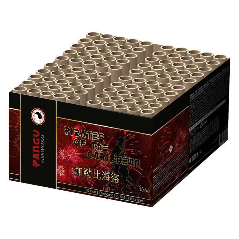 Pirates of the Caribbean 100 shots 25mm Goedkoop vuurwerk kopen bij Vuurwerkwinkel Belgie